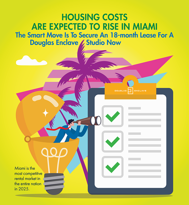 In Miami, the smart move is to secure an 18-month lease for a Douglas Enclave studio now and avoid competing with the masses for comparable apartments at much higher rents.